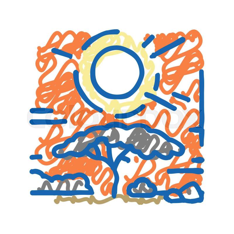 Foto de stock de atardecer, africano, vector