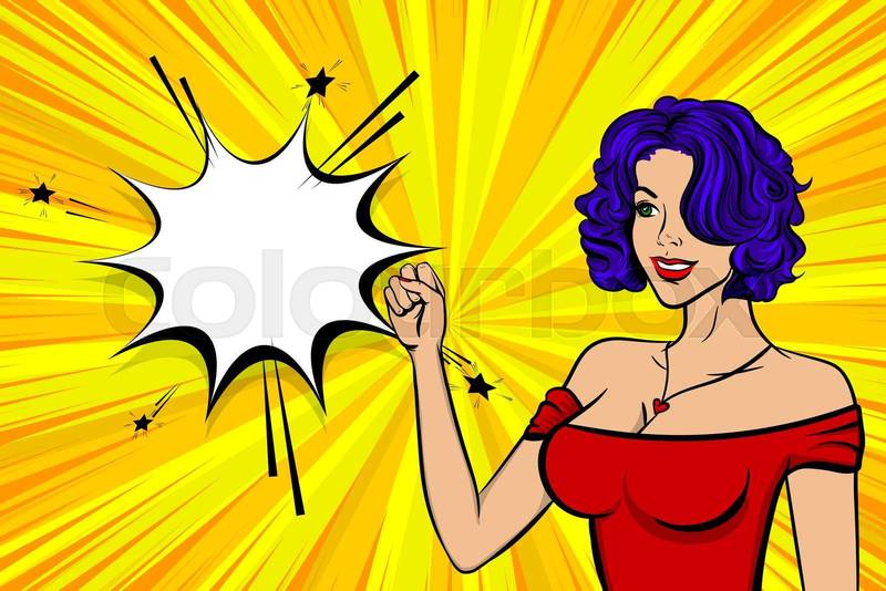 Pop art woman retro girl happy face