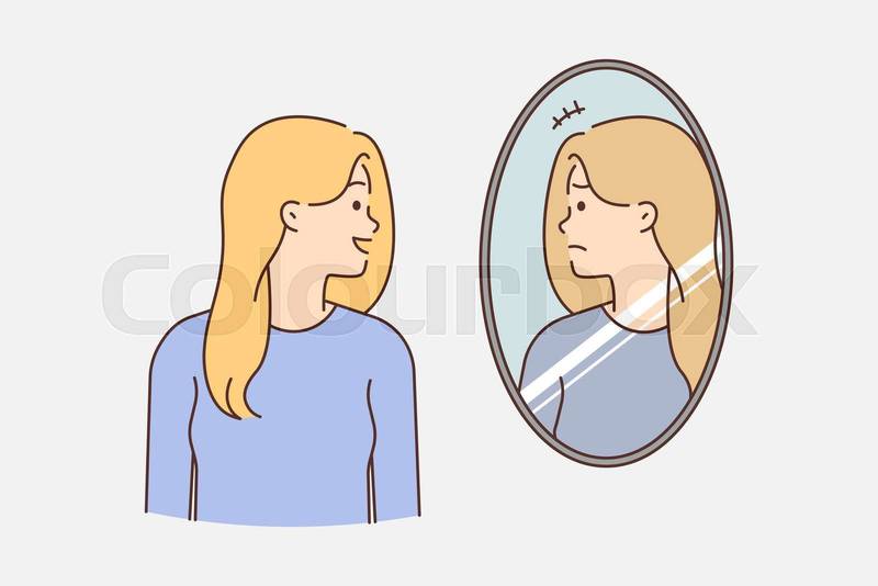 Foto de stock de espejo, depresión, mujer