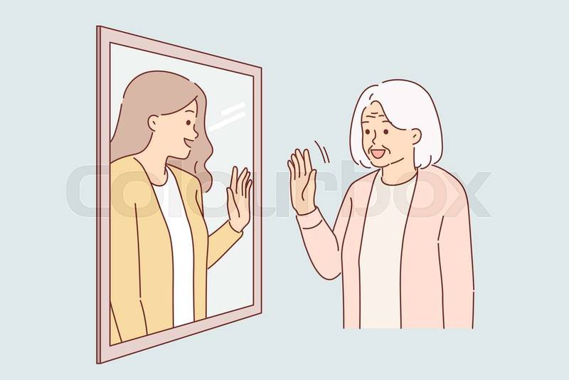 Foto de stock de espejo, mujer, viejo