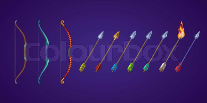 Set bows and arrows for rpg game shop, crossbows
