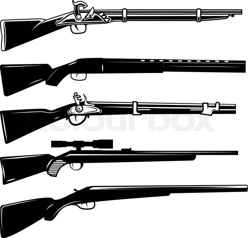 Set of illustrations of hunting rifles isolated on ... white background. Nautical anchor
