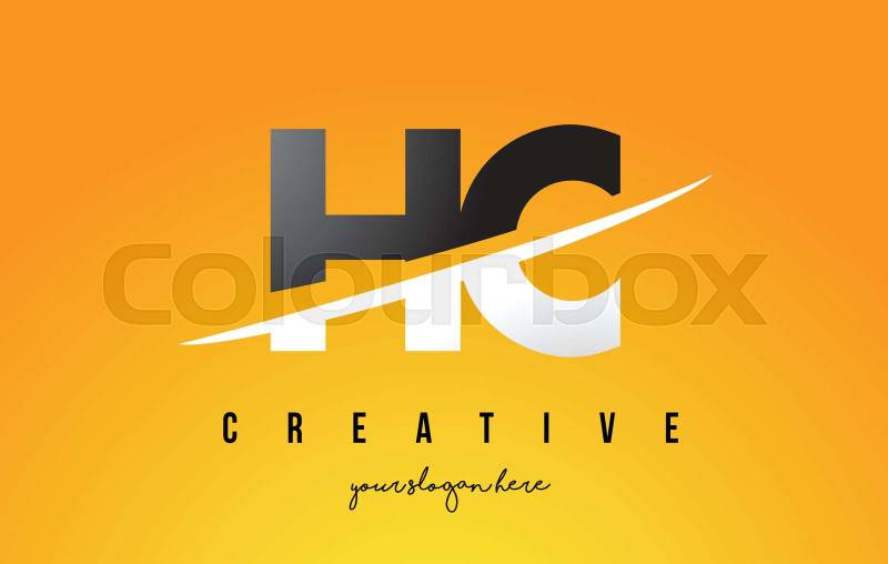 HC H C Letter Modern Logo Design with Yellow Backg ... round and Swoosh.