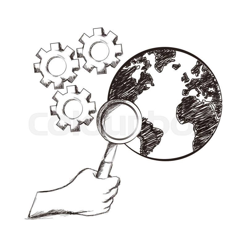 Foto de stock de lupe, mano, engranajes