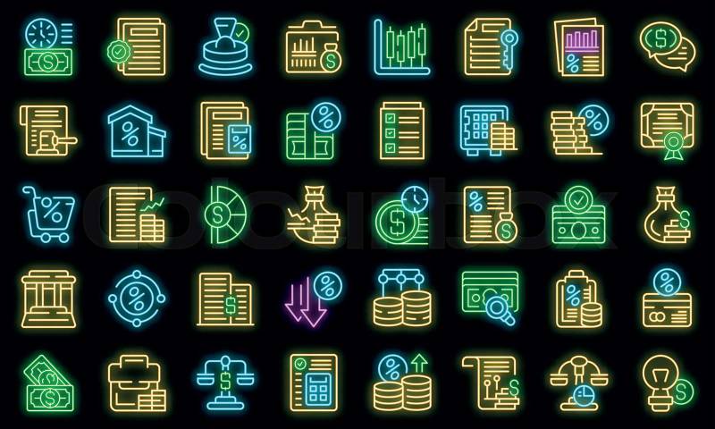 Foto de stock de neón, iconos, conjunto