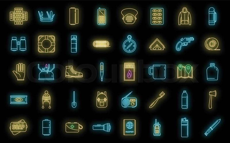 Foto de stock de neón, iconos, conjunto