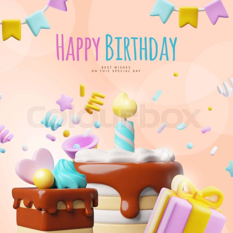 Foto de stock de pastel, 3d, cumpleaños