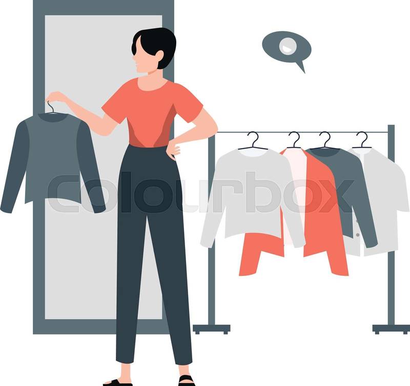 Foto de stock de ropa, intentar, sosteniendo