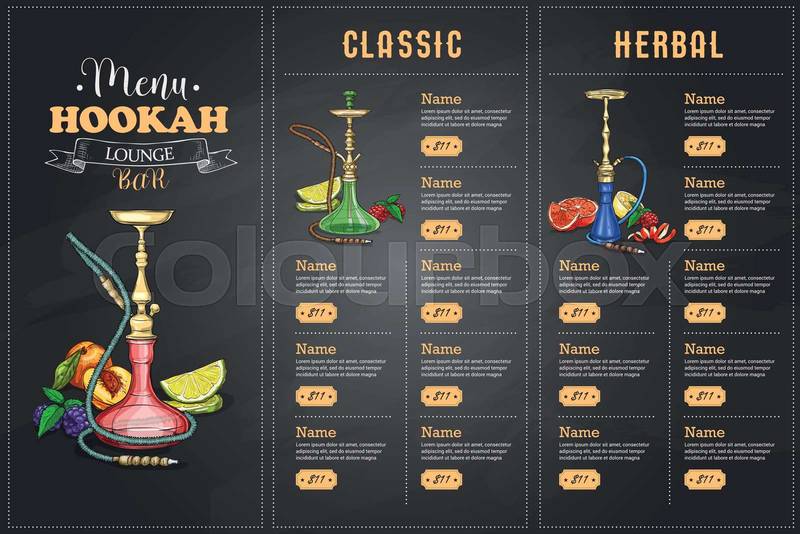 Foto de stock de shisha, menú, narguile