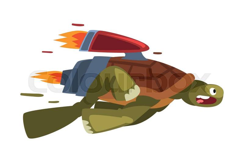 Fast Turtle, Funny Animal Cartoon Character with T ... urbo Speed Booster Vector Illustration on White Background